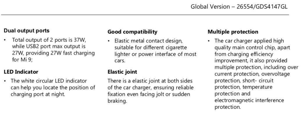 - Single port 27W MAX fast flash charging